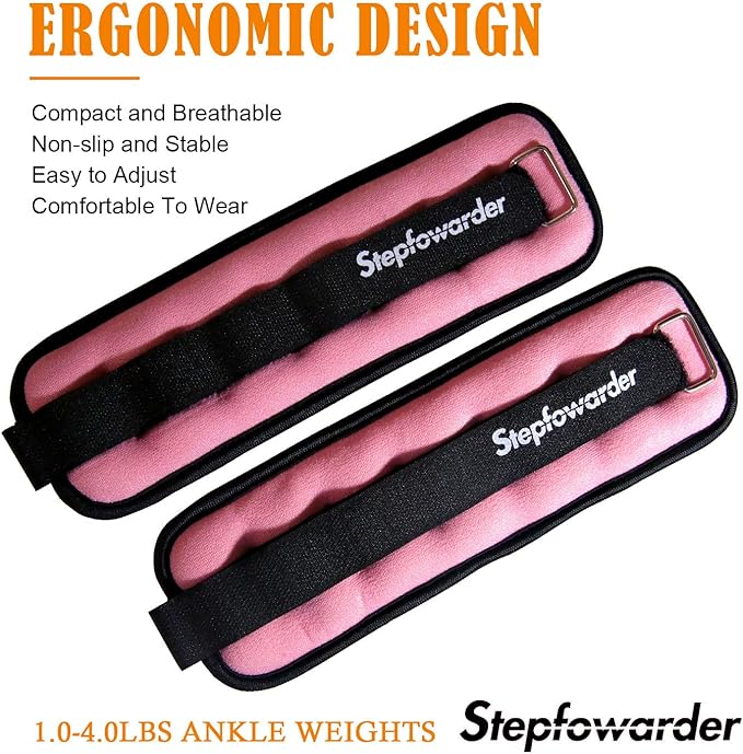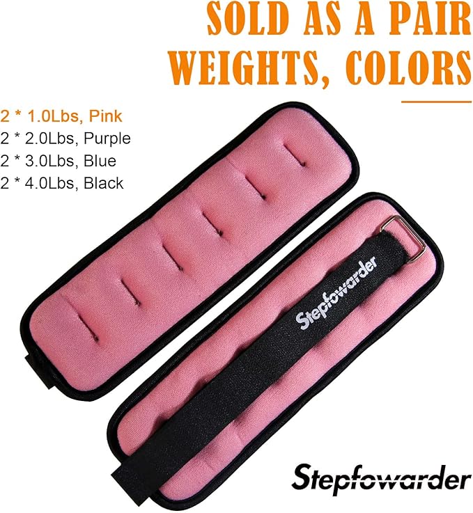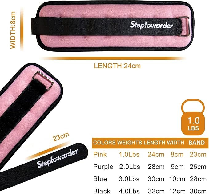 - 💪 Stepfowarder WEIGHTS: 2×1,0Lbs -pink, 2×2,0 Lbs-purple, 2×3,0 Lbs-blue, 2×4,0 Lbs-black, 4 weights & colors provide choices that suits your requirements, Please choose 1,0 Lbs for children, 1.0-2,0 Lbs for women and all weights for men.