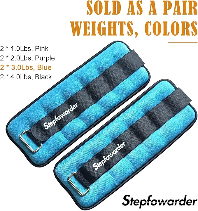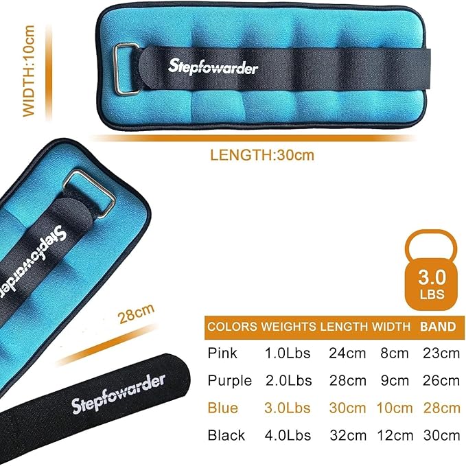 - 💪 Stepfowarder WEIGHTS: 2×1,0Lbs -pink, 2×2,0 Lbs-purple, 2×3,0 Lbs-blue, 2×4,0 Lbs-black, 4 weights & colors provide choices that suits your requirements, Please choose 1,0 Lbs for children, 1.0-2,0 Lbs for women and all weights for men.