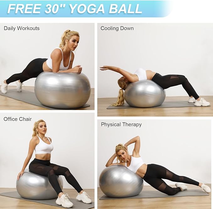 - ππππ ππ πππ ππππ: The package comes with a 30-inch free yoga ball and pump. The air pump has been upgraded with higher quality materials and a larger inflation port, making it easier and faster for you to inflate the ball.