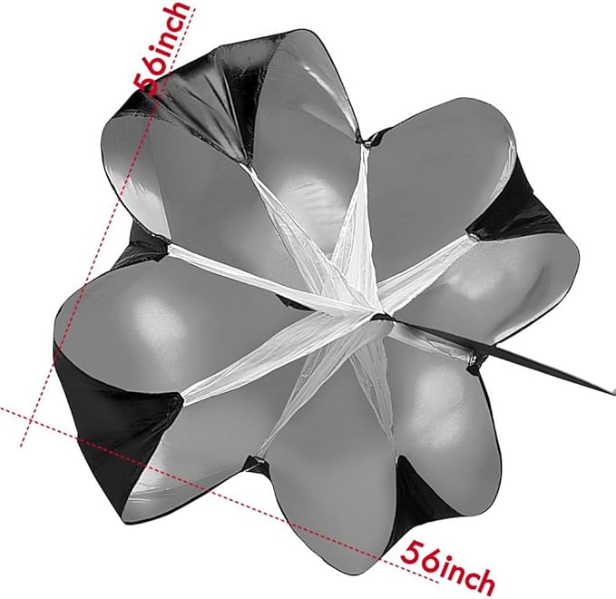 - 【Perfect Size】Diameter: Approx 56inch, can provide 15-30 lbs (1 umbrella) of resistance. You can tie two or more resistance parachute to improve sport effect.