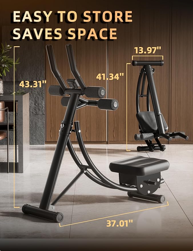 - Easy Assembly, Space-Saving: Ab workout equipment home gym is easy to assemble, even for those unfamiliar with assembly. The abdominal trainer folds away with just three simple steps, taking up minimal space. Compared to traditional ab workout machines on the market, it is compact and perfect for use in home gyms, offices, or outdoors, offering a convenient fitness experience