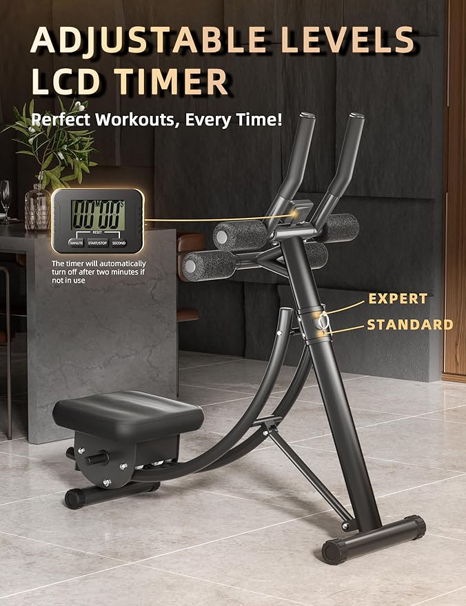- Progress from Beginner to Expert: Our abs workout equipment features two adjustable heights, making it easy to customize for your fitness needs at different stages. The detachable timer allows you to track workout time effortlessly, with options for countdown or regular timing, ensuring precise exercise planning. Its detachable design also promotes inclusivity, encouraging family or friends to join in and make workouts more interactive and enjoyable. Please Note: LCD TIMER does not include battery and will automatically turn off after two minutes if not in use