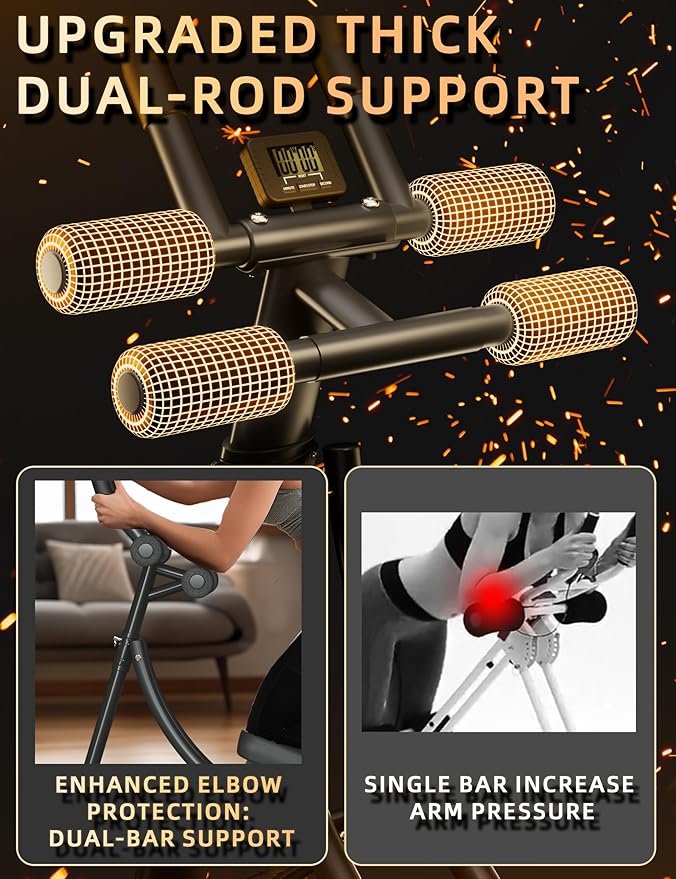 - Comfortable Joint Protection: This ab machine for stomach workout features thick foam elbow pads and a square, non-hollow kneepad designed for a comfortable workout experience. VoltifyMax ab trainer unique dual straight-line design effectively disperses pressure on elbows, reducing discomfort during exercise. The extra-thick and enlarged knee pad fits various knee sizes, allowing you to complete each workout session smoothly according to your training plan