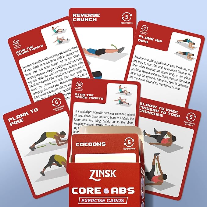 - Designed for all levels. Some modifications and tips to make the exercises more or less challenging can be found on the back of the cards so that you can get a great workout experience - no matter your fitness level.