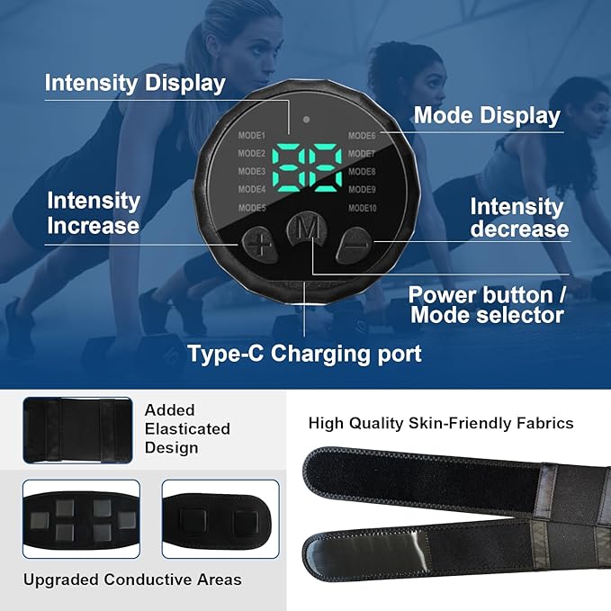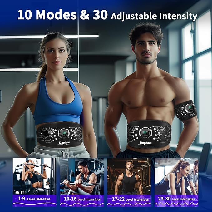 - 10 Modes & 30 Intensity Levels - The ab stimulator muscle toner has 10 modes and 30 intensity levels, allowing users to customize their training programs to fit the fitness goals. After using it for a while, you will get tight abdominal muscles and improved muscle strength.