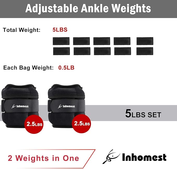 - Adjustable weight with removable weights: 5 individual sandbags in each pack, each bag weighs 0.5 lbs, total weights can be adjusted from 1-5 lbs PAIR for increased resistance. Allowing you to comfortably build muscle and tone your legs whether you are a starter or pro, women, men or kids.