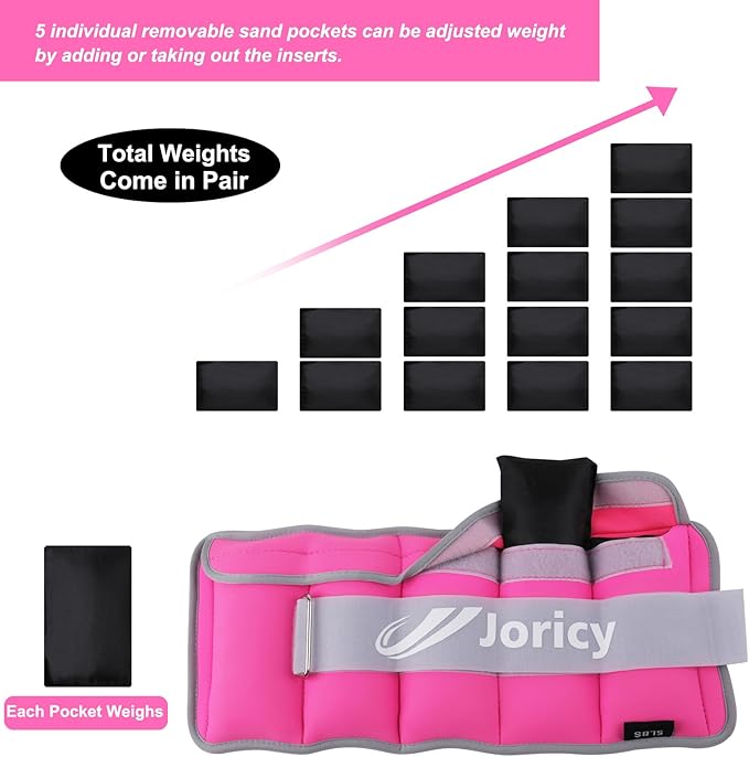 - Adjust Wrist Weights: 5 individual removable sand pockets for each ankle weights for women adjustable, each pocket weighs 0.6 lbs, total weights of a pair (each 3lb ankle weights) can be adjusted from 1-6 lbs by adding or taking out the inserts.
