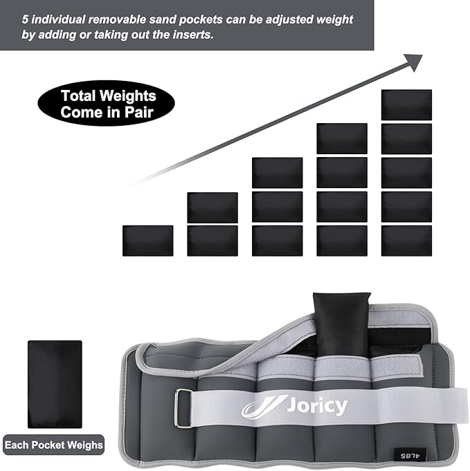- Adjust Wrist Weights: 5 individual removable sand pockets for each ankle weights for women adjustable, each pocket weighs 0.6 lbs, total weights of a pair (each 3lb ankle weights) can be adjusted from 1-6 lbs by adding or taking out the inserts.