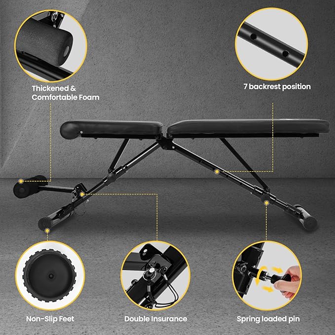 - 【EASY ASSEMBLY】 : Most of this foldable weight bench is pre-assembled for convenience, coming with installation tools. You can finish the assembly quickly and enjoy your bench workout at home.
