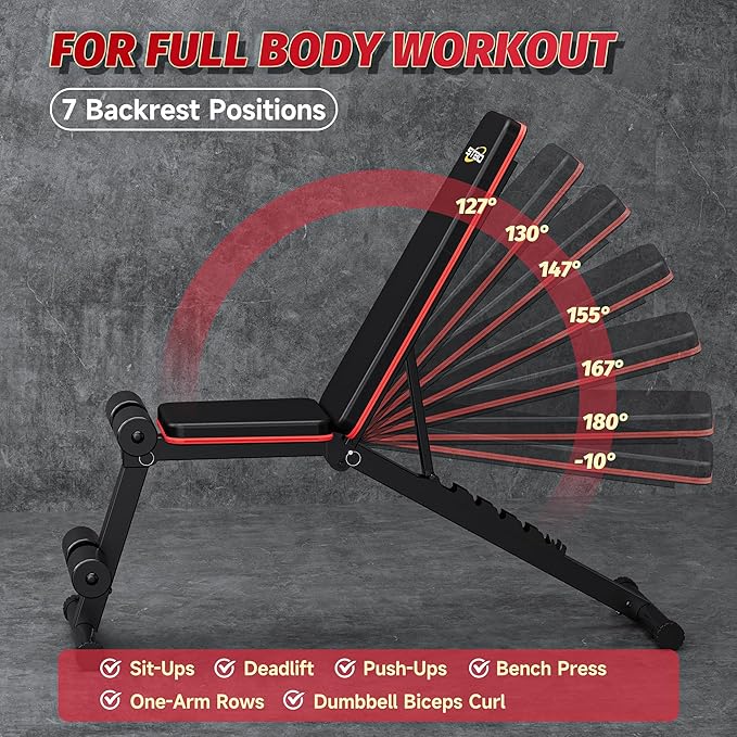 - 【EASY ASSEMBLY】 : Most of this foldable weight bench is pre-assembled for convenience, coming with installation tools. You can finish the assembly quickly and enjoy your bench workout at home.
