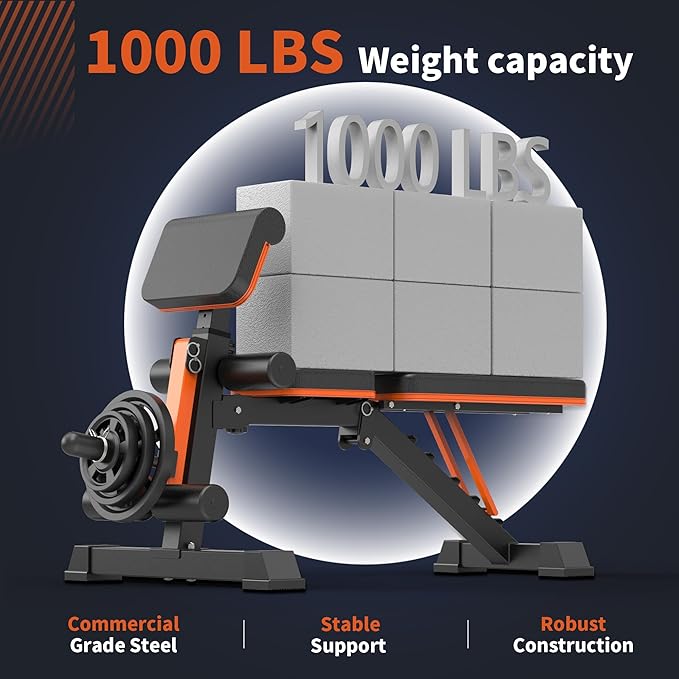 - 【1000LBS WEIGHT CAPACITY】 The XCHIEF heavy-duty workout bench is made from premium commercial-grade thick steel, capable of withstanding intense workouts, ensuring stability and durability. With a weight capacity of 1000 LBS, it provides a safe and reliable fitness experience. Perfect for strength training, the XCHIEF adjustable weight bench is your ultimate choice to achieve your fitness goals!