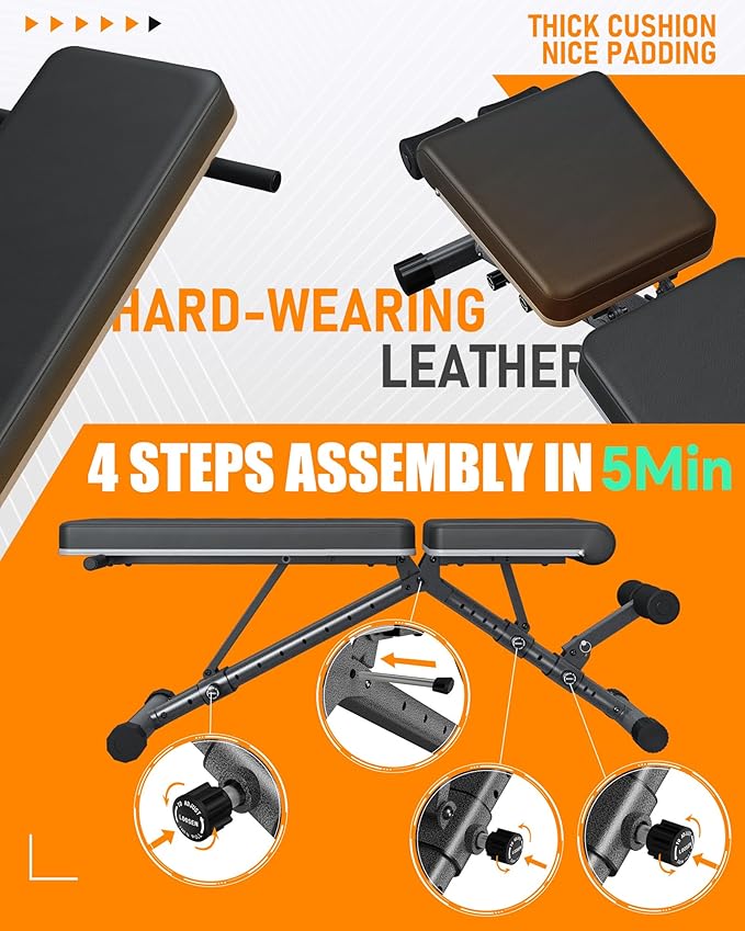 - 2024 ULTIMATE UPGRADE: VERSATILE ADJUSTABLE WEIGHT BENCH: Featuring 10 backrest and 7 seat adjustments, including negative angles, it caters to all your fitness needs. The new 90° upright backrest allows for more training options, while the gap-seamless seat-to-back design ensures maximum comfort. Plus, standard features like quick folding and wheels for easy mobility. This comprehensive upgrade is a must-have for any fitness enthusiast!