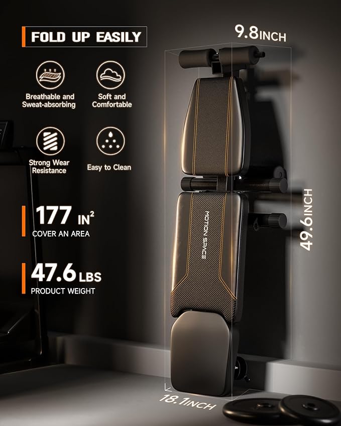 - 【Foldable and Compact】The Motion Space Multifunctional Fitness Bench can be easily folded, occupying minimal space and facilitating mobility and storage, allowing you to set up a home gym anytime, anywhere.