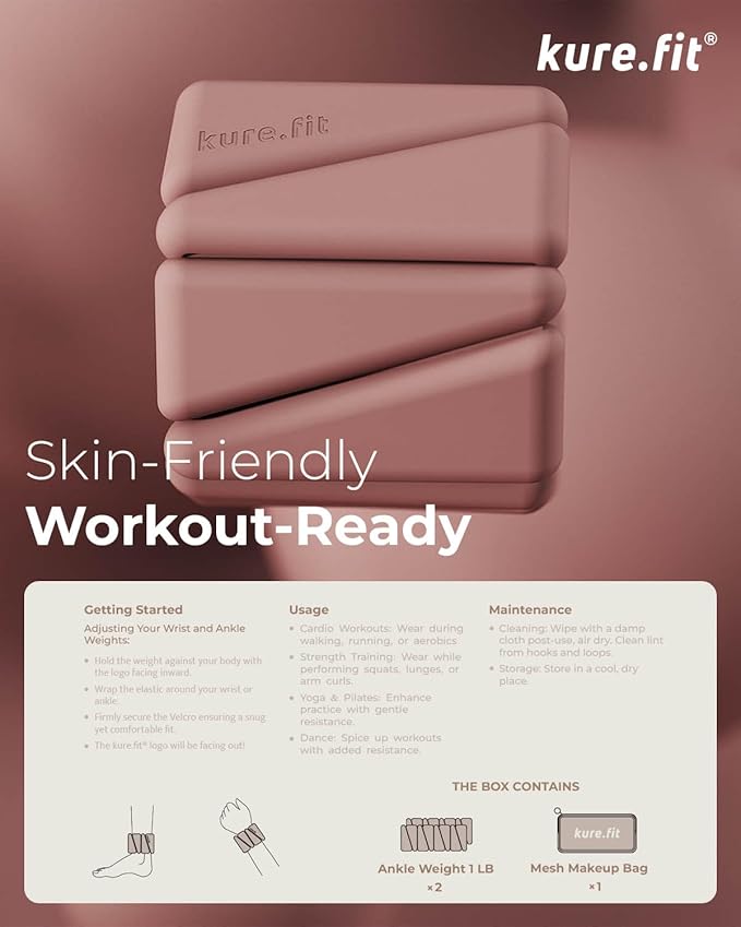 - Style : Welcome to kure.fit, where every piece of our fitness gear is a blend of practical elegance and contemporary design! Experience the epitome of style-conscious modern aesthetics with our Adjustable Wrist & Ankle Weights Set. Designed not just for function but also for fashion, these weights are the ultimate workout accessories for those who value trendsetting style alongside their fitness goals. Fashionable and chic, these wearable bracelets enhance your fitness regimen while showcasing elegant durability and a sleek, functional design. Ideal for a variety of activities—from Yoga and Pilates to running and aerobics—these 1lb pairs are a testament to fashionable fitness. Embrace this essential piece of exercise gear that perfectly marries durability with a chic, contemporary look. Join us at kure.fit and make a statement with every workout. Elevate your fitness experience with our weights that promise not just to meet, but to exceed your expectations in both style and performance. Step into your fitness journey with confidence and grace, sporting the most stylish and practical fitness gear on the market. Welcome to kure.fit, where every piece of our fitness gear is a blend of practical elegance and contemporary design! Experience the epitome of style-conscious modern aesth… See more