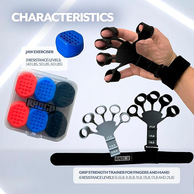 - Advanced Jaw Exerciser: Made with durable, long-lasting elastic materials, jaw trainer with three resistance levels: 40 lbs, 50 lbs, 60 lbs, jawline exerciser.