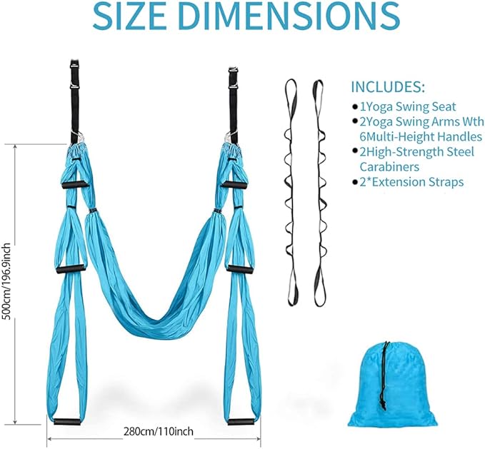 - 【Easy to setup and full set of accessories included】: full mounting accessories included, easy to set up in minutes; Package contents: 1 × Yoga Hammock, 2 × Stainless Steel Fixed Hanger, 2 × Extension Straps, 1 × Portable Storage Bag