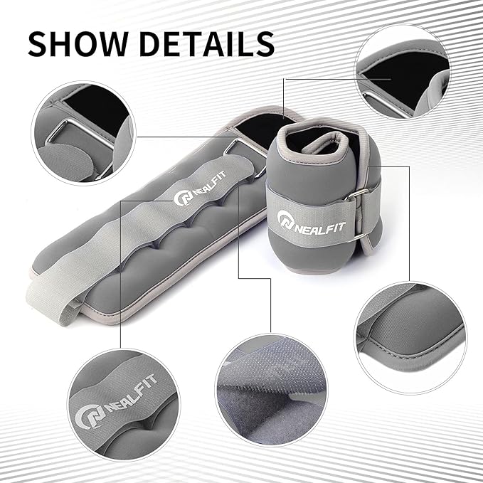 - The NEALFIT ankle weights were made of soft and stretchy mercerized cotton for exercise, and moisture absorbing material inside, breathable and comfortable to wear, lasting durability.