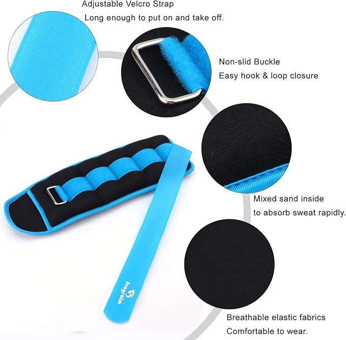 - Snug fit: Adjustable strap closure for a snug and secure, customized fits ankle/wrist/arm/leg. With long enough hook and loop fastener strap, the weights are super easy to put on and take off.
