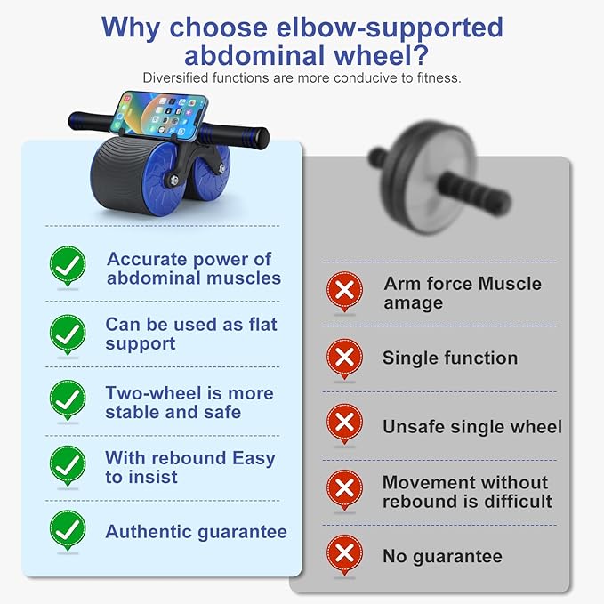 - 🔥Effortless Rebound Technology: Automatic rebound abdominal wheel features an automatic rebound mechanism for smooth and controlled exercise, reducing wheel wobble and providing enhanced stability. Perfect for beginners and pros alike. Transform your core workouts today!