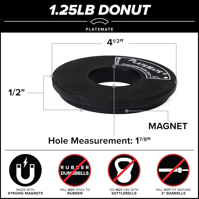 - Do NOT use donuts on 20lbs dumbbells or smaller. Intended for use with 25 lb dumbbells and higher. It is important to make sure your dumbbells are large enough to fit the 4"x4" magnetic surface area.