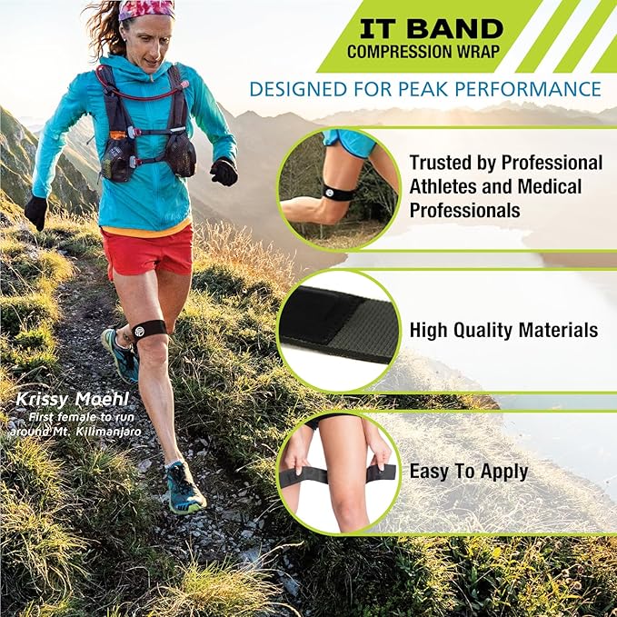 - FOR ALL ACTIVITIES: Elevate your lifestyle with this Premium IT Band Wrap. This adjustable compression band allows you to enjoy all your activities while reducing stain and pain on the outside of the knee—package of 1 size small-large.