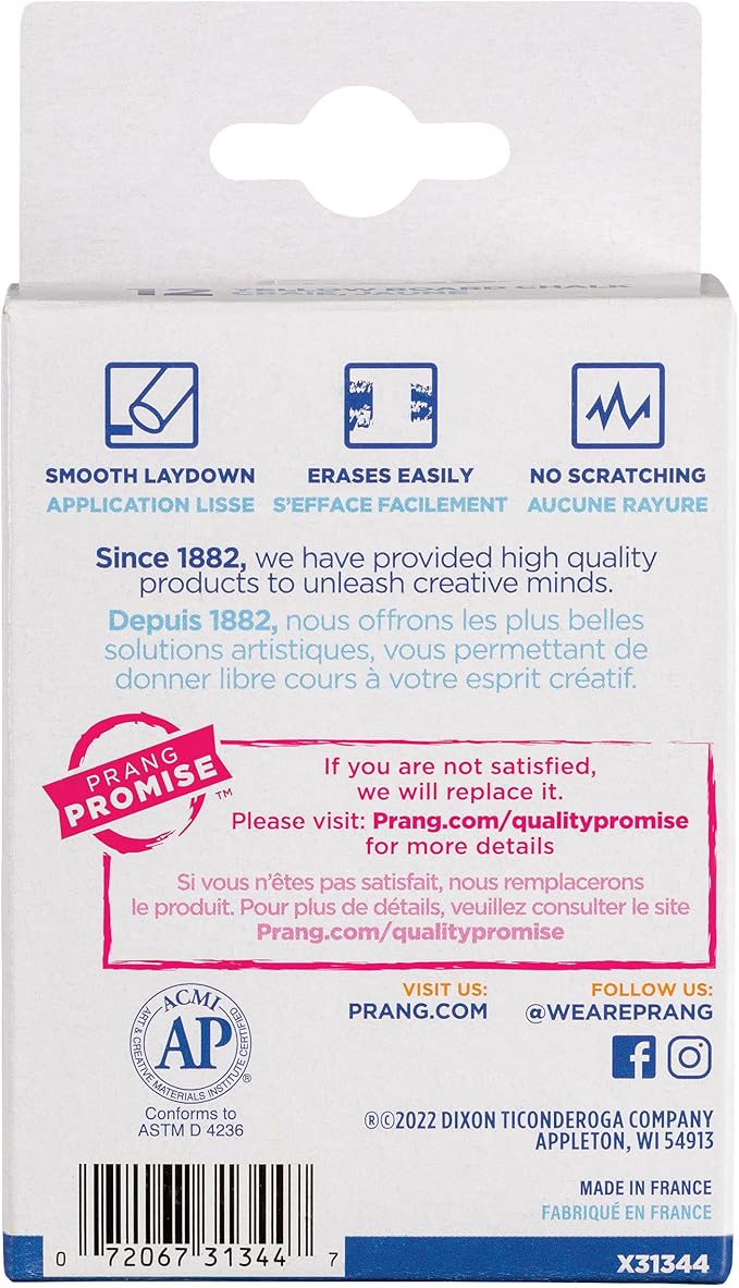 - SMOOTH WRITING – Scratchless, dust-free chalk is designed for smooth writing and drawing on traditional chalkboards.