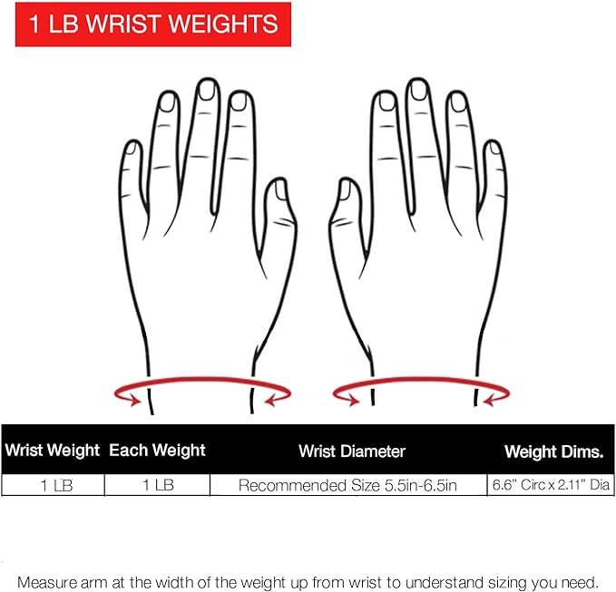 - WEIGHT SET: Two, 1 LB NON-ADJUSTABLE wrist weights included, recommended for wrist sizes 5.5in-6.5in(14cm-16.5cm)