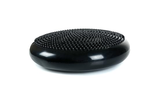 - Inflatable vestibular disc mimics both the movement and shape of the inflatable exercise ball when used on any seat