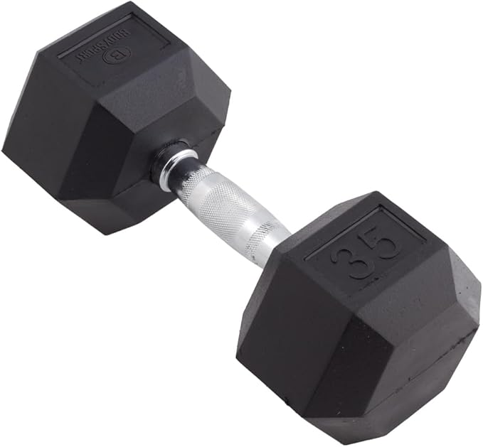Body Sport Rubber Encased Hex Dumbbell Weight, Single – Dumbbells for Exercises – Strength Training Equipment – Home Gym Accessories – Weight Training