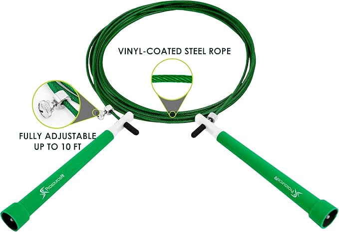 ProsourceFit Speed Jump Rope 10’ Adjustable Length, Super Fast Turning for Cardio, Boxing