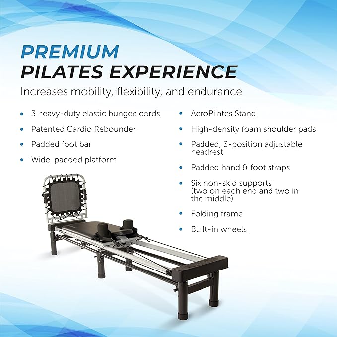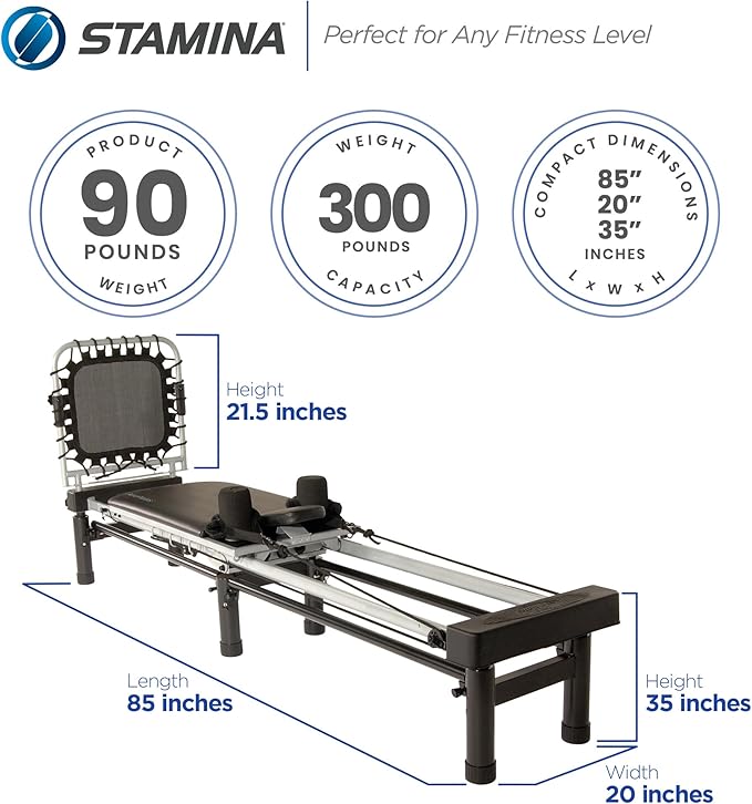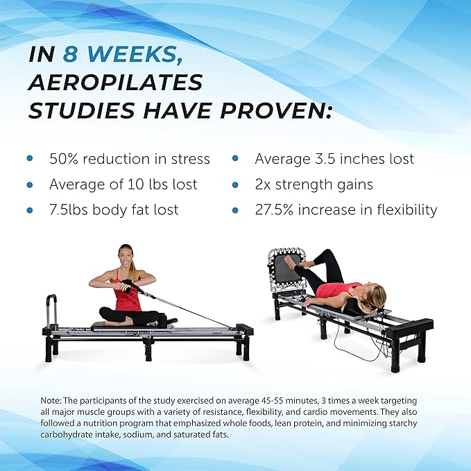 - Reformer for Pilates at Home: Provides an elegant system for total health; Studies show that pilates reformer workouts lead to weight loss, inches lost, increased strength, reduced stress, and more