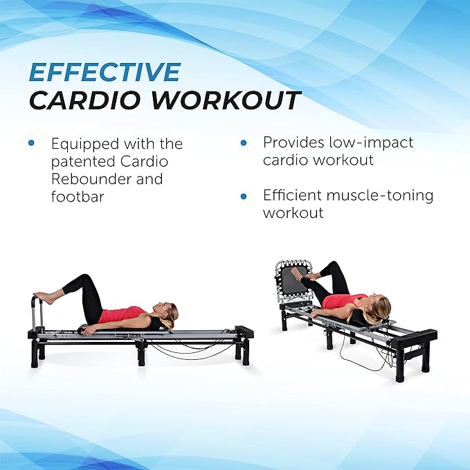 AeroPilates Reformer - Pilates Reformer Workout Machine for Home Gym - Cardio Fitness Rebounder- Up to 300 lbs Weight Capacity, Black