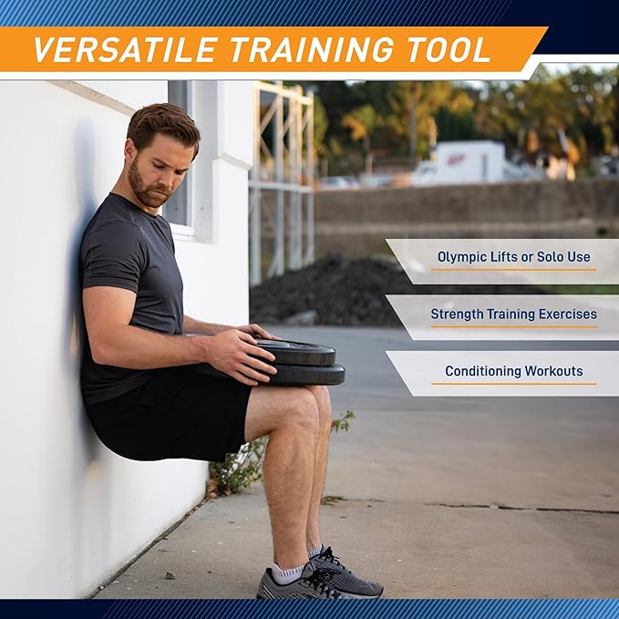 - DESIGNED FOR OLYMPIC-SIZED BARS – This high-quality 25-pound plate is specifically designed for Olympic-sized bars. Its solid structure features a 2” center sleeve that offers exact contact between the plate and the bar.