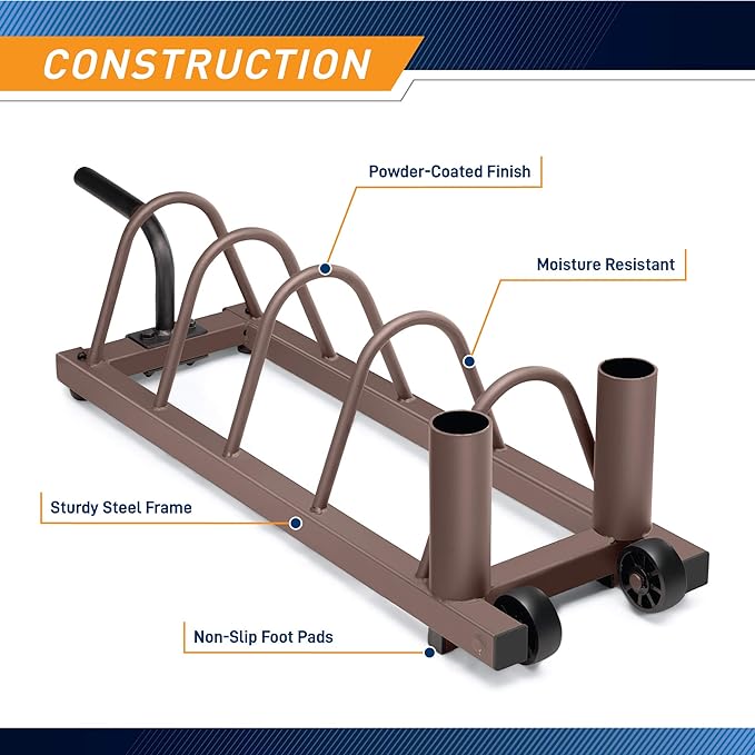Steelbody Horizontal Plate and Olympic Bar Rack Organizer with Steel Frame and Transport Wheels STB-0130, brown 41”L x 11”W x 9.5”H