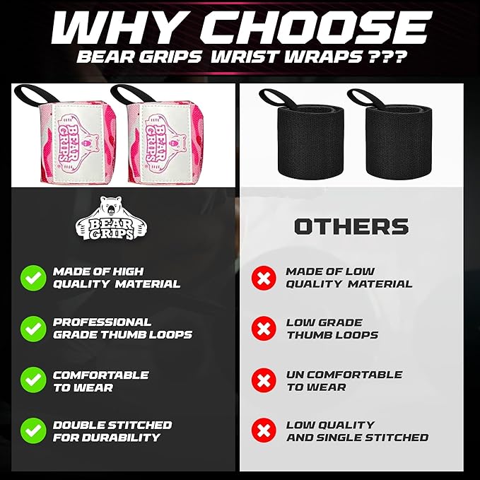 - ππππ ππππππππππ: Our lifting accessories for men and women wrist support for working out are designed to provide optimal wrist angles, effectively preventing injuries and discomfort during these exercises. With Bear Grips deadlift wrist straps for gym, you can focus on perfecting your form and achieving your fitness goals without worrying about wrist-related issues, allowing you to train with confidence and comfort