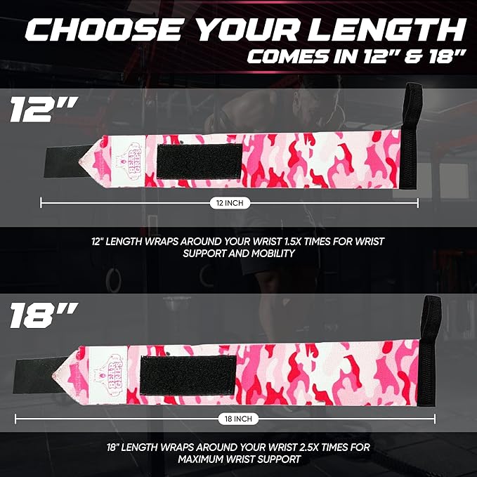 Bear Grips Wrist Wraps for Weightlifting | Weight Lifting Wrist Straps for Weightlifting | Extra Strength Gym Wrist Wraps | Two Wrist Wrap Per Pack | 12β & 18β | Lifting Wrist Wraps for Men & Women