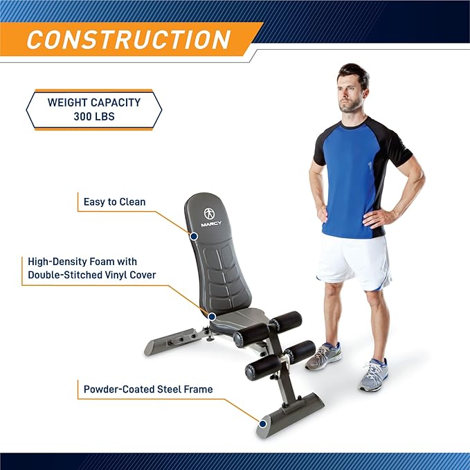 - VERSATILE EQUIPMENT – The Marcy Deluxe Adjustable Utility Bench can be used to target multiple muscle groups. It allows you to perform an array of strength-training exercises that focus on the arms, legs, chest, and core. Pair this bench with a rack or cage or use it with free weights, barbells, or body weights.