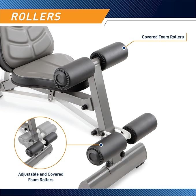 - ERGONOMIC DESIGN – This bench’s contoured foam roller pads, boxed upholstery, and high-density foam provide the optimal amount of support and comfort, helping you get the most out of your workout.