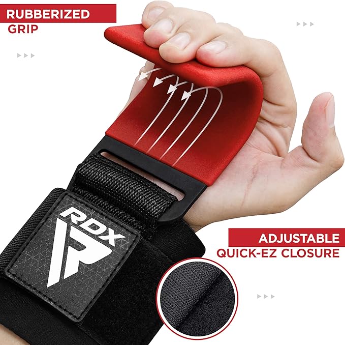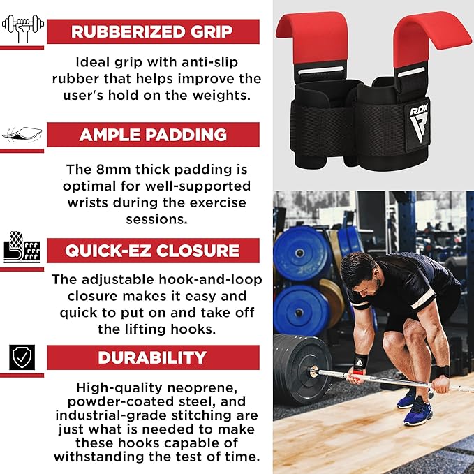 RDX Weight Lifting Hooks Straps Pair, Non-Slip Rubber Coated Grip, 7mm Neoprene Padded Wrist Wrap Support Powerlifting Deadlift Pull Up Fitness Strength Training, Gym Bodybuilding Workout, Men Women
