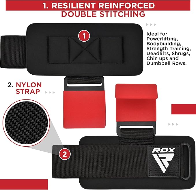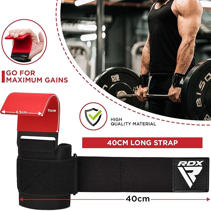 - ADJUSTABLE 40CM HOOK-AND-LOOP STRAP– Say goodbye to shifting straps during your heaviest lifts. The 40cm long nylon hook-and-loop strap in the RDX gym weight lifting hooks for men and women ensures a customizable fit around your wrists, eliminating any risk of slippage. Perfect for strongman training and deadlifting workouts, this hook strap keeps you locked in and ready to push your limits without distractions—so you can focus on dominating every set with total confidence.