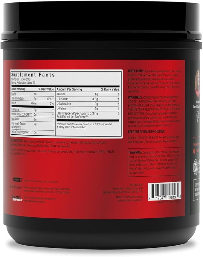 Post JYM Active Matrix Amino Recovery Powder | Pure Creatine HCL, BCAA’s, Glutamine, Carnitine, Betaine, Taurine for Maximum Strength, Repair, Definition, Performance | Lemonade Flavor 30 Servings