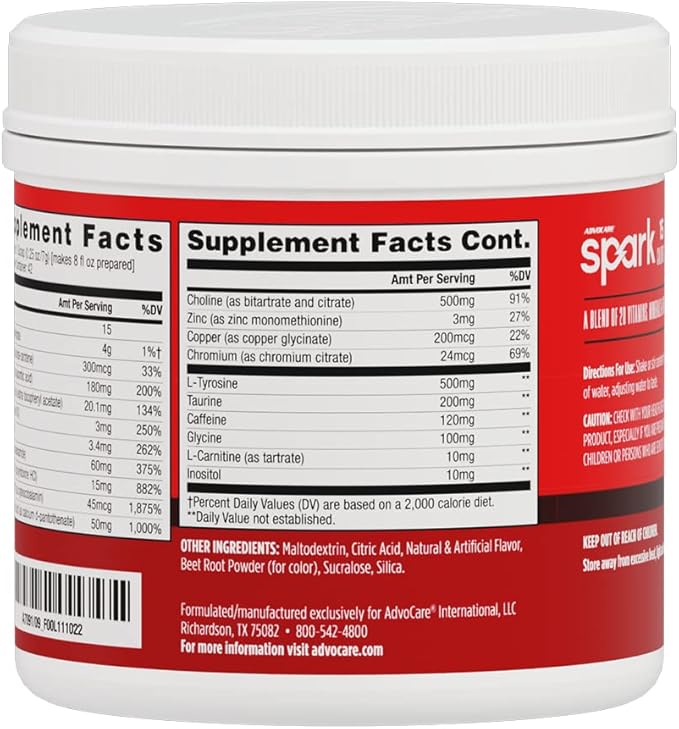 AdvoCare Spark Vitamin & Amino Acid Supplement - Focus & Energy Drink Powder Mix with Vitamin A, B-6, C & E - Also Includes L-Carnitine & L-Tyrosine - Cherry - 10.5 oz