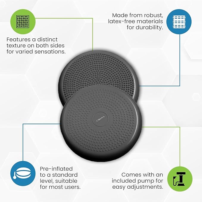 - Balance disc promotes core stability, strengthens muscle tone, improves balance and body posture.