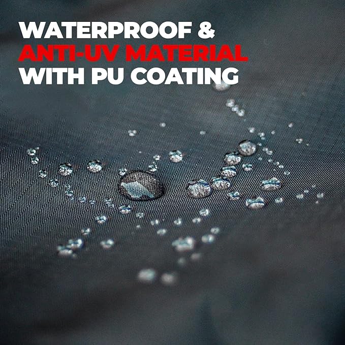- High-Performance Protection - Very strong and durable ‘ripstop' 300D Oxford Fabric with ‘double stitching’ & 'heat sealed’ TPU seams delivering Top-Class protection from adverse weather conditions - whether rain, snow, ice, wind, dust or sun! Includes high-quality drawstring bag for convenient storage.