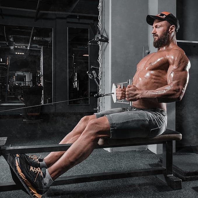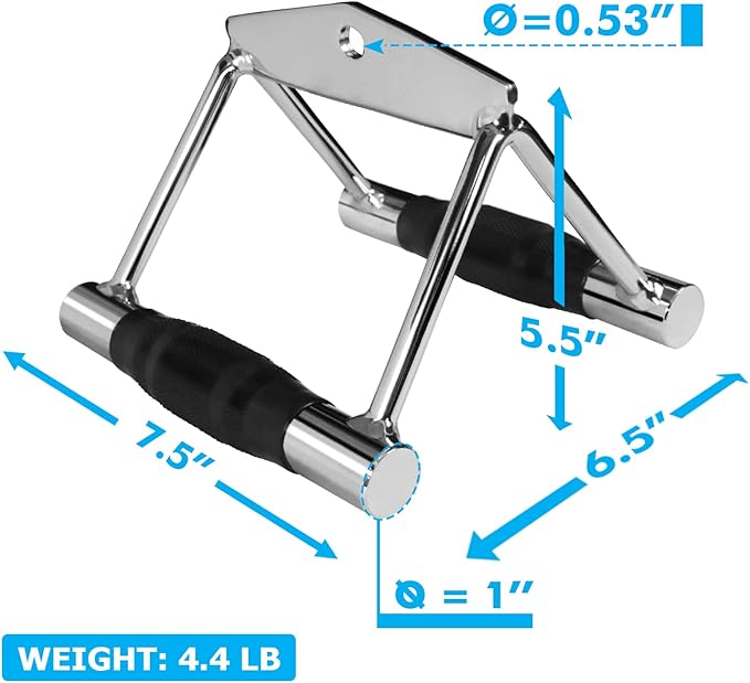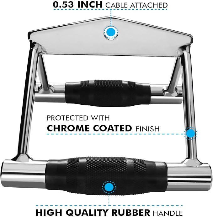 - Rubber handles with textured surface for non-slip increase the secured and firm grip to your hands during workouts; the V-shape provides a balanced force to both arms when you attach it to any gym machine to perform.