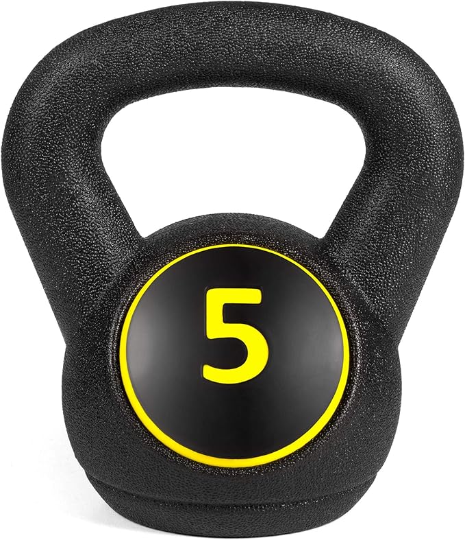 - VERSATILE EQUIPMENT: Varying weights are ideal for squats, lunges, thrusts, presses, and more in your choice of 3 weights; OVERALL DIMENSIONS: 5-Pound Kettlebell: 5"(Dia) x 8.5"(H); 10-Pound Kettlebell: 6.5"(Dia) x 9.5"(H); 15-Pound Kettlebell: 7"(Dia) x 11"(H)