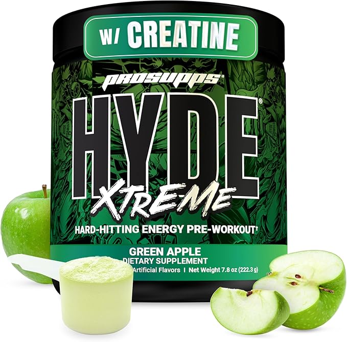 - Power Through Your Toughest Workouts: ProSupps Mr. HYDE Xtreme is a pre-workout powder designed for those who like to go hard at the gym, with double the energy. This formula delivers extreme energy, focus, intense pumps, power, and enhanced endurance. Not recommended for beginners. Green Apple Flavor. 30 servings. 375mg caffeine/serving.