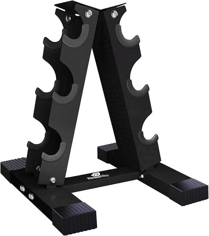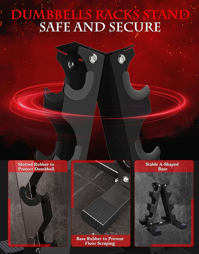 - The A shape dumbbell racks having 2MM thickness in construction, scratch less structure and solid firm design that allows rack to stand still without any slippage from foot
