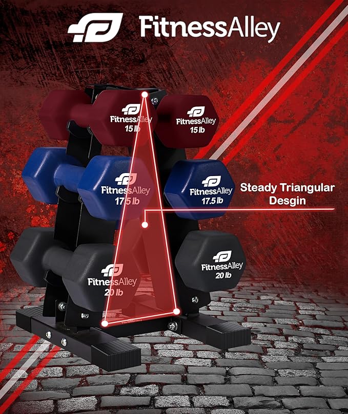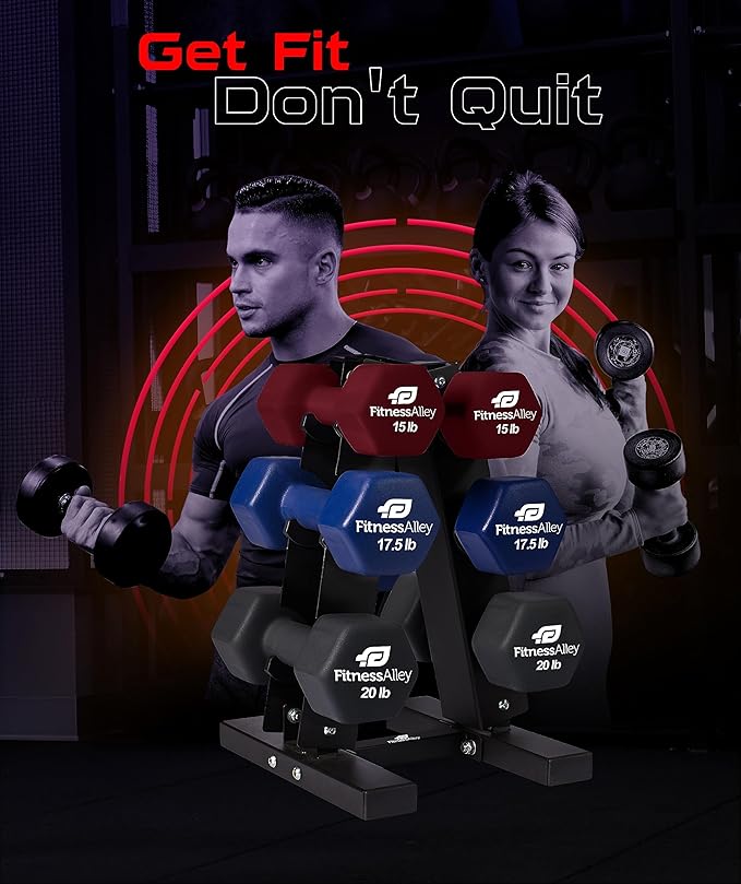 - Neoprene Dumbbells 3 tier Racks is considered the best option for house gyms setup as it is portable and doesn’t require much space. The display of dumbbells racks adds significant outlook as well