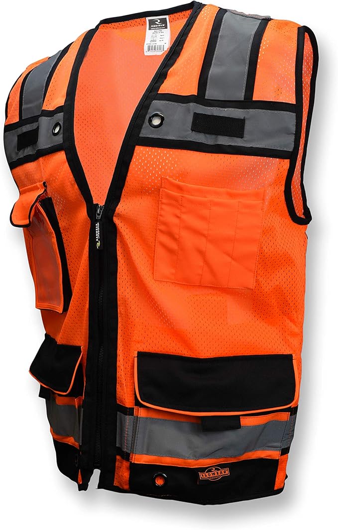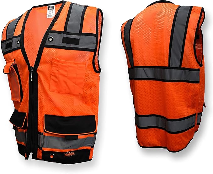 Radians SV65 Heavy Duty Surveyors Safety Vest with Zipper, Large Plan Pocket, Hi-Viz Green or Hi-Viz Orange